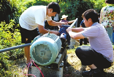 昨日,崇阳县铜钟乡马桥村干群在械,引水入田。面对严重的旱情,该县积极行动,多措并举抗大旱,全民动员,力争最大限度降低旱灾损失。 记者 袁灿 摄