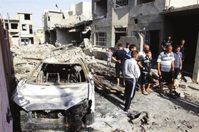 昨日,在伊拉克北部城市基尔库克,当地民众查看前一天发生爆炸袭击的现场。伊拉克警方10日说,包括首都巴格达在内的伊拉克多个地方当天发生一系列恐怖袭击事件,造成至少290人死伤。 据新华社