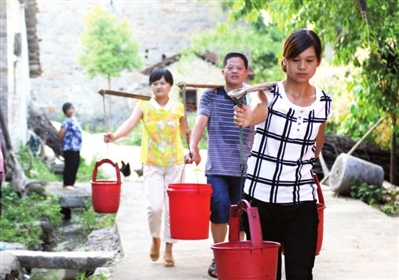 11日,咸安区大幕乡组织干部为高峰村群众送水。近期高温旱情,使地处边远地区的高峰村群众吃水困难。当地政府一方面派出技术人员入村了解情况,协商打井事宜,另一方面调动送水车辆和人员进行送水,全力保障该村群众生活所需。
