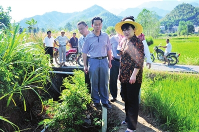 8月5日,市委书记任振鹤、市领导陈树林、闫英姿到路口镇高耀村、铜钟乡马桥村和佛岭村,检查指导人畜饮水和农业抗旱工作。