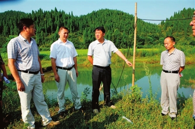7月29日,县委书记杨良锋带领县农办、农业局、水利局等负责人,奔赴路口镇高耀村察看灾情,解决人畜饮水问题。