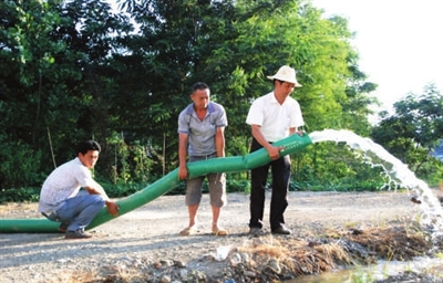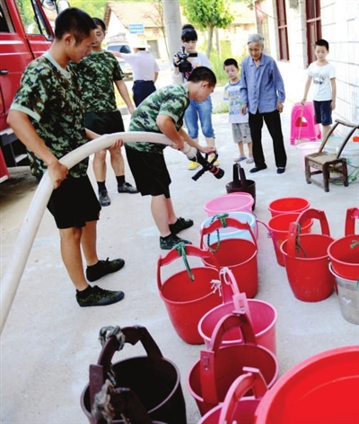 为了加大抗旱减灾工作力度,县、乡、村三级成立了抗旱服务队和送水“运输队”,县防汛抗旱办公室配备了专人和抽水机械、送水车,在旱情最严重的区域,发挥抗旱的“集团军”作用;乡镇成立了抗旱小分队,用潜水泵抽水抗旱,灵活机动;村里成立了抗旱专班,为困难户、缺水户服务。