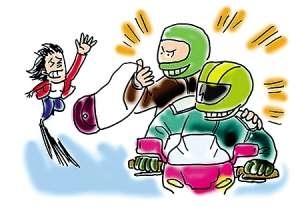 7月31日晚8时许,城区某大型商场收银员关小丽下班骑摩托车回家,行至城南车站红绿灯处时,挂在车上的白色手提包被摩托车后座的“黑衣人”抢去,关小丽连同摩托车被拖倒,肘部和膝盖受伤,包内几十元钱现金和一部价值1099元的手机被抢走。