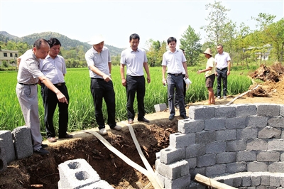 图为崇阳县委书记杨良锋在白霓镇洪泉村检查指导抗旱的镜头。