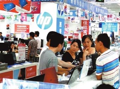 随着各大院校录取通知书陆续送达,一些准大学生家长纷纷为自己的孩子采购手机、相机、电脑等高端数码产品。据数码经销商介绍,准大学生挑选数码产品更注重性能和个性款式,尤其是四五千元的高端手机、笔记本很受欢迎,销路十分看好。图为学生家长在选购笔记本电脑。记者 袁灿 摄
