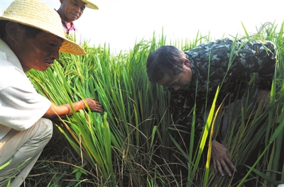 21日,嘉鱼县陆溪镇官洲村,镇农技站站长高国清正在村民吴忠青的稻田里查看稻飞虱虫害情况。眼下,正是水稻抽穗灌浆期,也是稻飞虱产卵繁殖的旺盛期,若防治不及时,将出现大面积死秆倒伏、减产。该镇积极组织农技人员分赴各村组,指导农民用药防虫,打响虫口夺粮保卫战。 记者 夏正锋 通讯员 周晓林摄