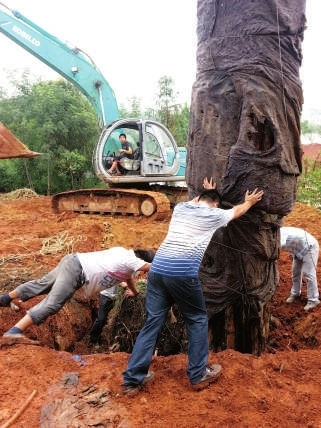 市园林局下属碧云园林绿化公司承担此次移栽任务,相关负责人方俊说,下一步,将打桩对树进行支撑固定、搭遮阴网、装自动喷灌设施、注营养液等,并派专业技术人员负责管理,力争将这棵古树救活,保护好珍贵的生态资源。