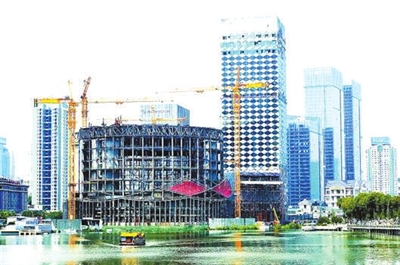 8月28日,武汉楚河汉街东端,有着“红灯笼”美称的汉秀剧场拔地而起,其“巨无霸”屋顶已于近日顺利完成钢桁架整体升顶合龙。外墙已贴上两片标志性菱形“红叶”,这座中西合璧的建筑奇观散发出其独特的魅力。