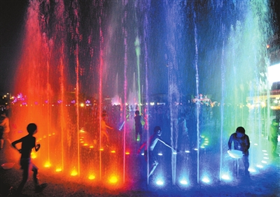 8月30日,赤壁市人民广场,大型音乐喷泉开放,市民成群结队前来观赏。赤壁市于今年5月底启动喷泉改造升级工程,将原来的水喷改为旱喷,安装喷泉专业水地灯550盏,由多媒体电脑程序控制,喷泉水型随音乐变化多达100余种。升级后的喷泉是咸宁地区最大最先进的旱喷之一。