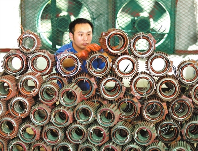 8月27日,咸安工业园华声机电有限公司的生产车间内,技术人员正在对节能电机半成品进行检测。