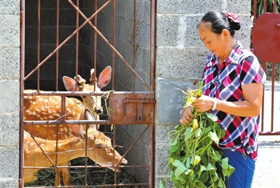 2日,崇阳白霓镇石山村玲玲梅花鹿养殖基地,饲养人员正在给梅花鹿喂食。“在外面打过工,帮别人养过鹿,后来攒了点钱,就想办个养殖场,自己创业。”场主杜汉良告诉记者,现在场里共有14头梅花鹿,出产的鹿茸和鹿血酒每年可以带来10余万元的收入。 记者 程慧 通讯员 吴兴华 摄
