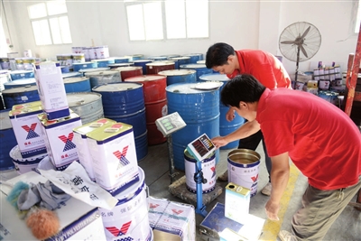 9日,嘉鱼县潘湾畈湖工业园,强盛合成材料科技有限公司员工在检测产品质量。该公司总投资7200万元,于今年3月建成投产,产品广泛应用于国内家居装饰、工程防腐、汽车、军工等行业,预计实现年产值1.2亿元,税收400万元。 记者 袁灿 摄
