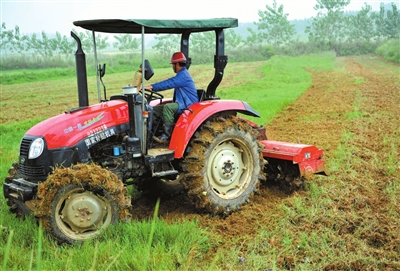 12日,咸安区向阳湖镇斩关村种植大户鲁南明驾驶着大型机械翻耕田地,为机播200亩油菜做准备。