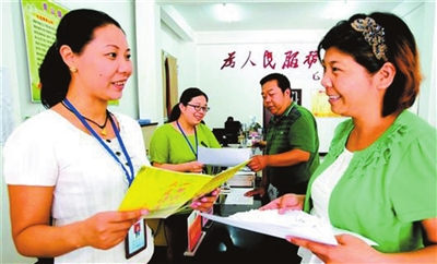 9月3日,武汉市青山区青山镇街社区干部热情为居民办理就业社保。该街创新社区管理和服务模式,28个项目实行一站式服务,并限时办结,大大方便了居民群众。