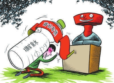 江西一家饮料公司推出了“专供首长”名号的矿泉水。对此,涉事饮料公司职员证实称只要给钱或订购一定数量的矿泉水,就可在瓶身上随意打“首长专供”等字样(9月13日《南方都市报》)。