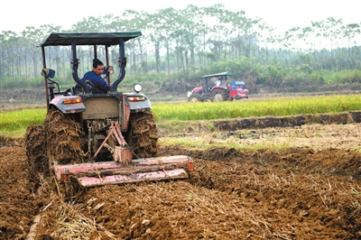 (图1)11日,咸安区官埠桥镇泉湖村民耕整土地,准备种油菜。眼下,咸