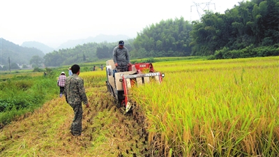 连日来,咸安区桂花镇明星村村民正在运用机械收割中稻。今年,该镇仅明星畈就有2000亩中稻喜获丰收,实现了旱灾之年不减产的目标。 通讯员 马良志 方光常 摄