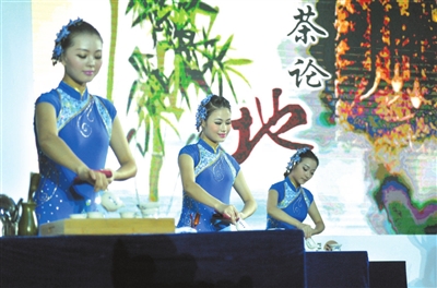 7日晚,赤壁大酒店高朋满座,赤壁羊楼洞、赵李桥等茶厂的茶艺师们给来自俄罗斯、蒙古国的嘉宾们展示茶艺,并介绍各种茗品,受到嘉宾和客商们的欢迎,让他们从中体验到青砖茶之乡的独特魅力。