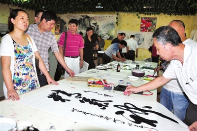 金秋送爽,翰墨飘香。22日,由中国名家大别山书画院主办、湖北天宇三农科技有限公司承办的中国名家文化艺术团走进通山,现场挥毫泼墨,即兴创作了大量作品。 通讯员 敖琼 陈进 摄