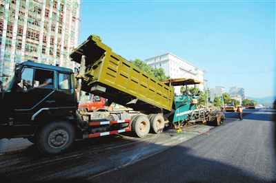时至中秋节,崇阳大道升级改造工程项目已进入道路刷黑阶段,其管、网、线地下基础工程、人行道铺设工程、路灯架设工程已基本完工。为争取在国庆节前夕全面建成,该项目指挥部工作人员和施工单位节假日不休息,昼夜加班,严格按照工序,清运路渣、清洗路面、贴道路防裂贴和路沿石、铺设沥青……每天在100多名施工人员、10多台大型机械设备的紧张工作下,该项目建设正在高质、快速地推进。