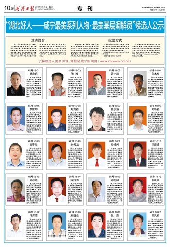 “湖北好人——咸宁最美系列人物·最美基层调解员”候选人公示