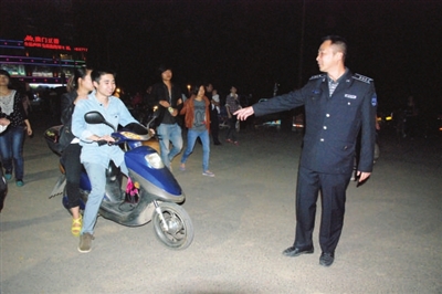 “请将你的摩托车停到那边去,这里是公园入门处,禁止停放车辆!”人群中,一个中年男子一边指挥着来去的车辆,一边提醒旁边一名正在停放摩托车的市民。他叫阮鹏程,是县城市管理执法局天城公园管理办公室主任。