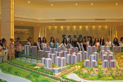 9月28日下午,参加咸宁2013国际旅游小姐菁英赛的佳丽们,齐聚赤壁碧水云谷营销中心,庆祝营销中心的盛大开放。晚上,该公司还举行了精彩的晚会,近50位来自世界各地的佳丽为赤壁人民奉上了精美绝伦的才艺表演,营销中心现场人山人海,热闹非凡。