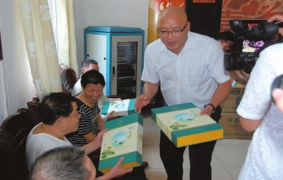 中秋节前夕,赤壁·印象董事长刘建荣委托公司相关负责人和赤壁市民政局工作人员到赤壁市社会福利院和儿童福利院慰问,并送去150盒月饼。