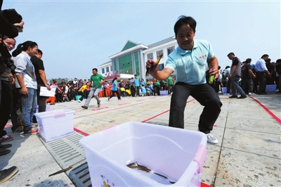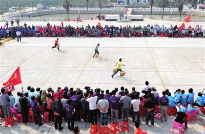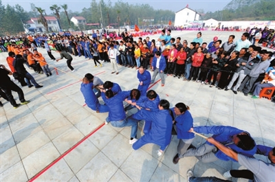 拔河比赛——你来我往,胜负难分;“抓泥鳅”——争分夺秒,妙趣横生……23日,嘉鱼县陆溪镇藕塘村农民文化广场上,一场别开生面的农民趣味运动会正在举行。来自全镇各村的400多名农民选手参加了5个项目的激烈角逐。