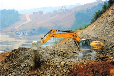 10月23日,崇阳县石城镇神口村武深高速施工现场车来车往,尘土飞扬。武深高速公路嘉鱼至通城段全线铺开,崇阳境内沿线经过桂花泉镇,石城镇,沙坪镇,肖岭乡4个乡镇8个村。