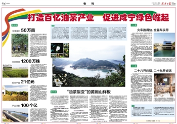 这样的情形不仅出现在通城县,湖北森泰集团公司投资10亿元,在通山县建设占地300亩、年产茶油5万吨的生产线,建成后将实现年产值50亿元。其项目完工后,可带动周边100万亩高产油茶基地种植及6万余户农民家庭投入油茶相关产业,每户每年可增收8000元以上。