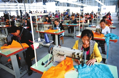 3日,通山县通达皮具有限公司员工在赶制销往欧美产品。该公司投资5000万元,主要生产书包、登山包、化妆包、购物包。近年来,该公司积极与国际市场接轨,不断研发设计新产品,开发生产的各类包具远销欧美、日韩等国家和地区,实现年产值1.2亿元。 记者 袁灿 摄