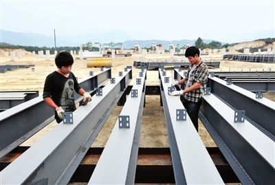 10月30日,通城县麦市镇福隽石材工业园施工现场,工人们正在抓紧建设。该镇立足当地丰富的石材资源,引进福建客商投资兴建工业园,计划投资3.5亿元,入园规模企业共5家。园区将于明年全面建成投产,可年产饰面花岗岩1000万平方米,创税收2000万元,提供就业岗位400余个。