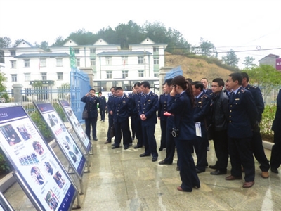 10月29日,全市工商系统放心消费保护工作推进会在通山召开。图为与会人员正在黄沙工商所参观放心消费展板。通讯员 袁博 阮姝 摄