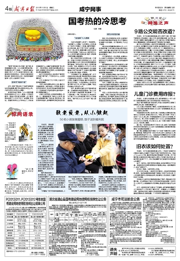 对于一些网民反映“求捐无门”的情况,咸宁新闻网携咸宁义工组织将于12月初举办“暖冬行动”,收集爱心人士捐赠的衣物。届时将会在网上随时公布活动进度;活动结束后,所有数据将反馈到论坛,接受监督。广大市民可以踊跃参加。