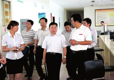 10月14日至15日,省纪委办公厅主任刘晓林(中)一行来我市调研检查纪检监察机关绩效考评和特色工作。图为刘晓林在市政务服务中心检查工作。(咸纪宣)