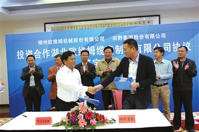 7日下午,随着一阵阵掌声,柳工集团欧维姆机械股份有限公司与田野集团股份有限公司完成合作签约仪式,标志着湖北欧维姆缆索制品有限公司在嘉鱼正式成立。