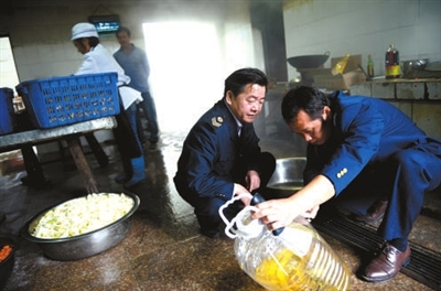 10月30日,咸安区卫生监督、工商执法人员在马桥镇中学食堂进行食品检查。入秋以来,该区卫生监督、工商部门加大对各个中小学校食堂、周边餐饮店、小卖部的检查力度,及时发现和消除食品安全隐患,确保学生、教师饮食安全。