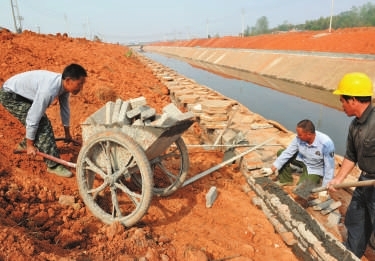 (图2)9日,咸宁经济开发区横五路市政及官埠河改造工程施工现场,工人正在建设景观带护栏。横五路是一条横向景观干道,全长2634米,项目竣工后,将有效改善周边居民出行条件。 记者 程慧 摄