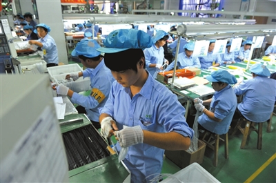 22日,湖北(通城)瀛通电子公司生产车间内,工人们正在忙着生产。拥有员工3600余名,主要以研发生产销售通讯类耳机线材和电脑周边线为主的瀛通电子公司,今年前三季度,已上缴税金近6000万元,出口创汇3000余万美元,其产品被评为“湖北名牌”,并获市政府首届质量奖。