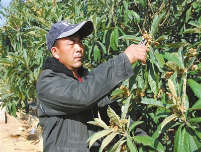 近年来,崇阳县沙坪镇因地制宜,大力开发荒山荒坡1.4万亩,种植枇杷、丰水梨、黄金梨、油桃、柑橘等水果品种。该镇古城村水果种植大户彭寿良告诉记者,今年的特大旱灾对果树的损害相当严重,加强果树修剪、施肥等冬季管理更为重要。图为彭寿良正在为枇杷修剪枝桠。