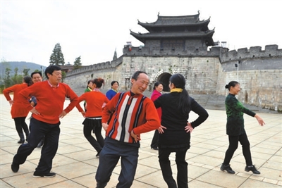 近日,赤壁市北门前古城墙下,赤马港文体协会的文艺骨干们跳起自编自导的舞蹈“新龙船调”。“‘新龙船调’具有地方风味,我们编排的舞蹈有别于广场舞,现在参与跳舞的人达到100多人。”会员魏启梅说。 记者陈红菊 通讯员 江桦摄