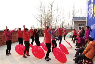 5日,在咸安汀泗桥镇赤岗村4组农家大院,伴随着优美的音乐旋律,20多个农家妇女在辅导老师的引领下翩翩起舞。
