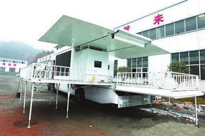 本报综合消息 近日,记者在十堰汇斯诚专用车有限公司厂区内看到,一辆由东风天龙商用车改装的移动商务展示车功能十分强大:车辆13个组合展开后,有半个篮球场大的展台,30平方米以上的室内空间。这台十堰企业自主研发的移动商务展示车,将企业的展示平台方便、快捷地带到全国各地。