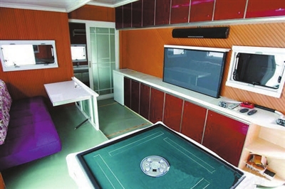 记者看到,“变形”后,车厢内是一个客厅,电视影音系统、桌面娱乐设备等一应俱全,还有一个有马桶、洗手盆,可淋浴的独立卫生间。技术人员告诉记者,车内系统采取太阳能发电、蓄电模式,即使车辆不启用,电量也够用6小时以上。