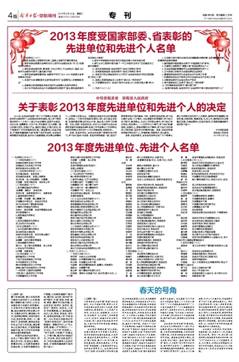 2013年度受国家部委、省表彰的 先进单位和先进个人名单
