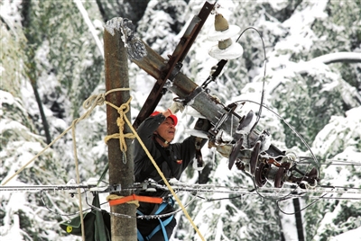 近期,我市连续出现低温冰冻雨雪天气,导致部分山区配电线路毁损。咸宁供电公司启动应急预案,抽调600余名专业技术人员组成30多支抢修突击队,全力以赴抢修受损线路,至昨日傍晚,被损坏的线路全部恢复供电。 通讯员 邓东峰摄