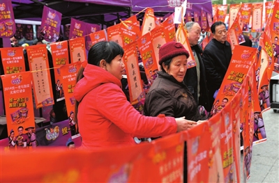 昨日,温泉某超市举办猜灯谜活动,吸引广大市民驻足。元宵节到来,不少商家瞧准商机,通过举办猜灯谜等传统活动,促进消费,也为节日注入更多喜庆、欢乐的元素。 记者 陈红菊程慧摄