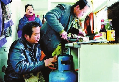 14日,黄石市下陆区青龙山社区“夕阳红党员安全巡逻队”在一户老年居民家中检查煤气灶具。节后,社区许多老人重回空巢状态,又遇新一轮雨雪天气,巡逻队员为社区60岁以上的老年住户义务检查电器线路、水管等,发现问题及时修理。 (本报综合消息)