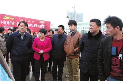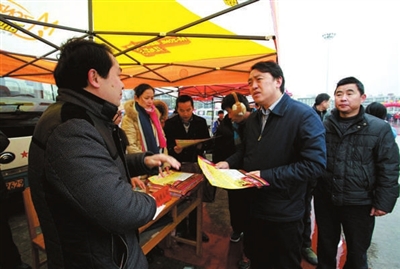 2月7日上午,虽是天寒地冻,崇阳县大集广场却是人潮涌动,崇阳2014年春风行动暨工业企业春季大型用工招聘会在此举行。县四大家领导杨良锋、杭莺、廖建鸣、王光新、王艳梅、郑耀英、陈能武、石磊,陈熙利,县办主任王崇琳、县经济开发区管委会主任张正韶一行来到招聘会现场,为用人单位和求职者鼓劲。